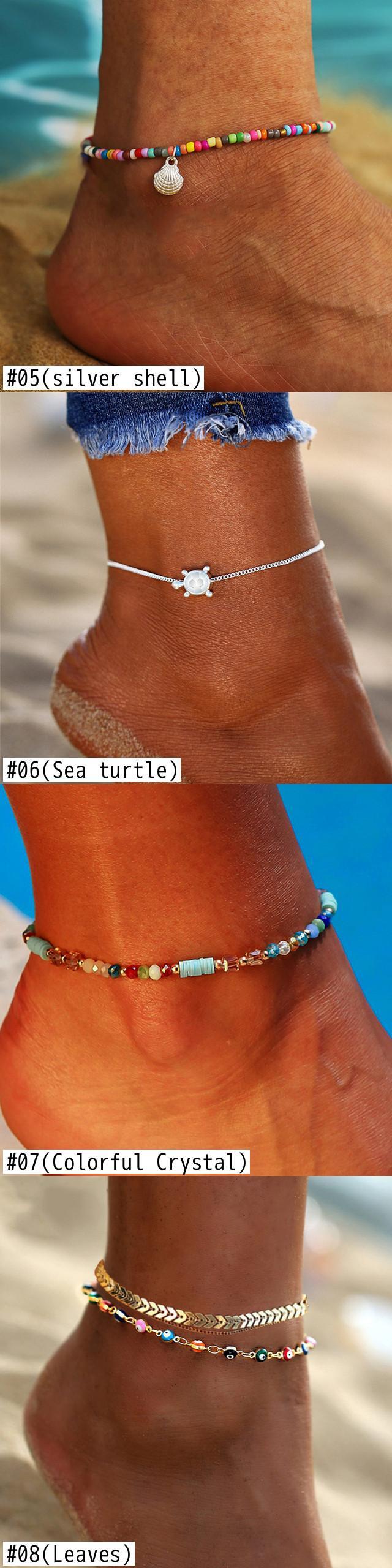 送料無料 ボヘミアンスターシェルアンクレットマルチレイヤーフットチェーン2021トレンディなカラフルなビーズアンクルブレスレットレディースビーチアクセサリー アクセサリー AE177778706528257