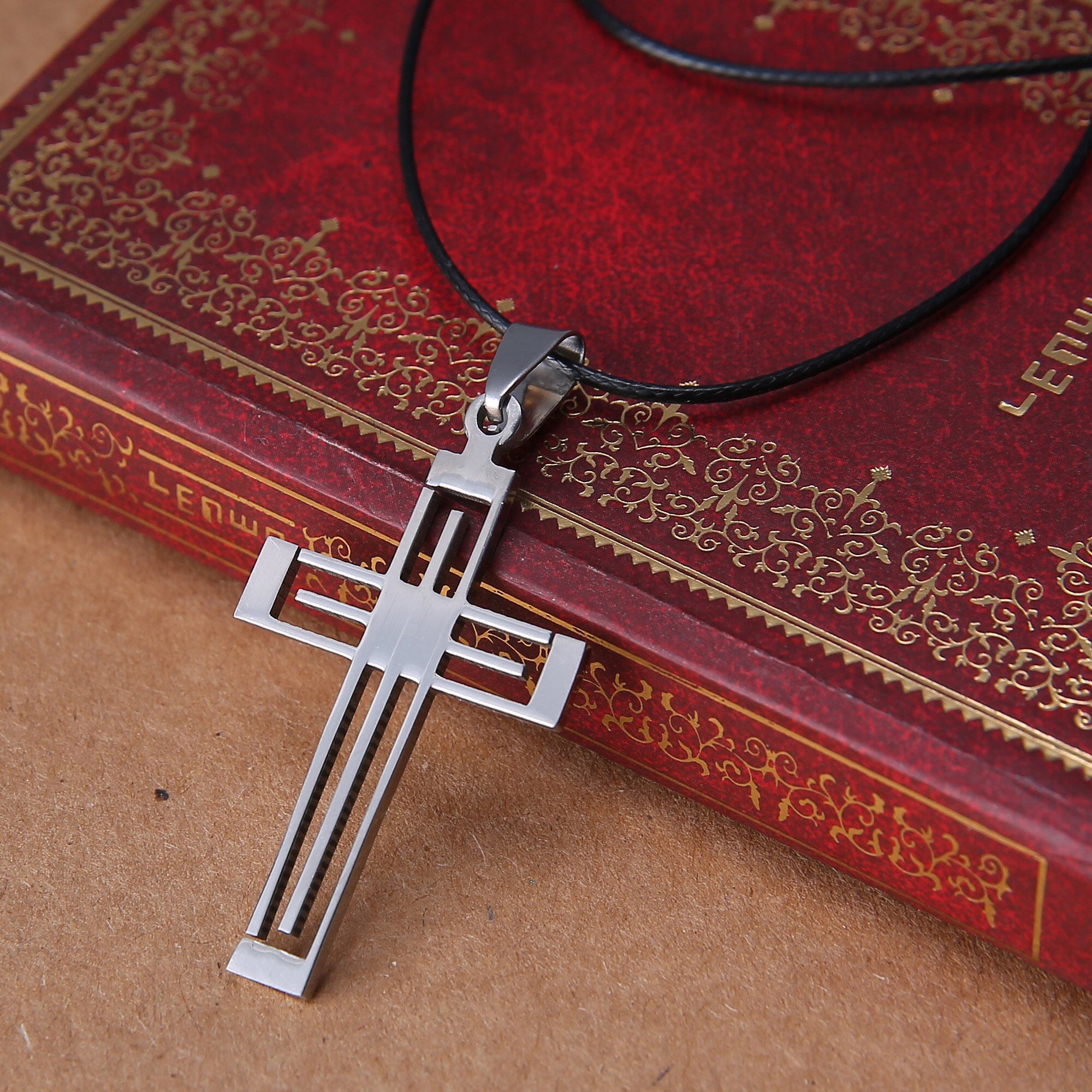 送料無料 チャームホロークロスペンダントネックレスメンズレディースステンレススチールネックレスレザーチェーンカラーネックレス レース アクセサリー AE1777795660919948