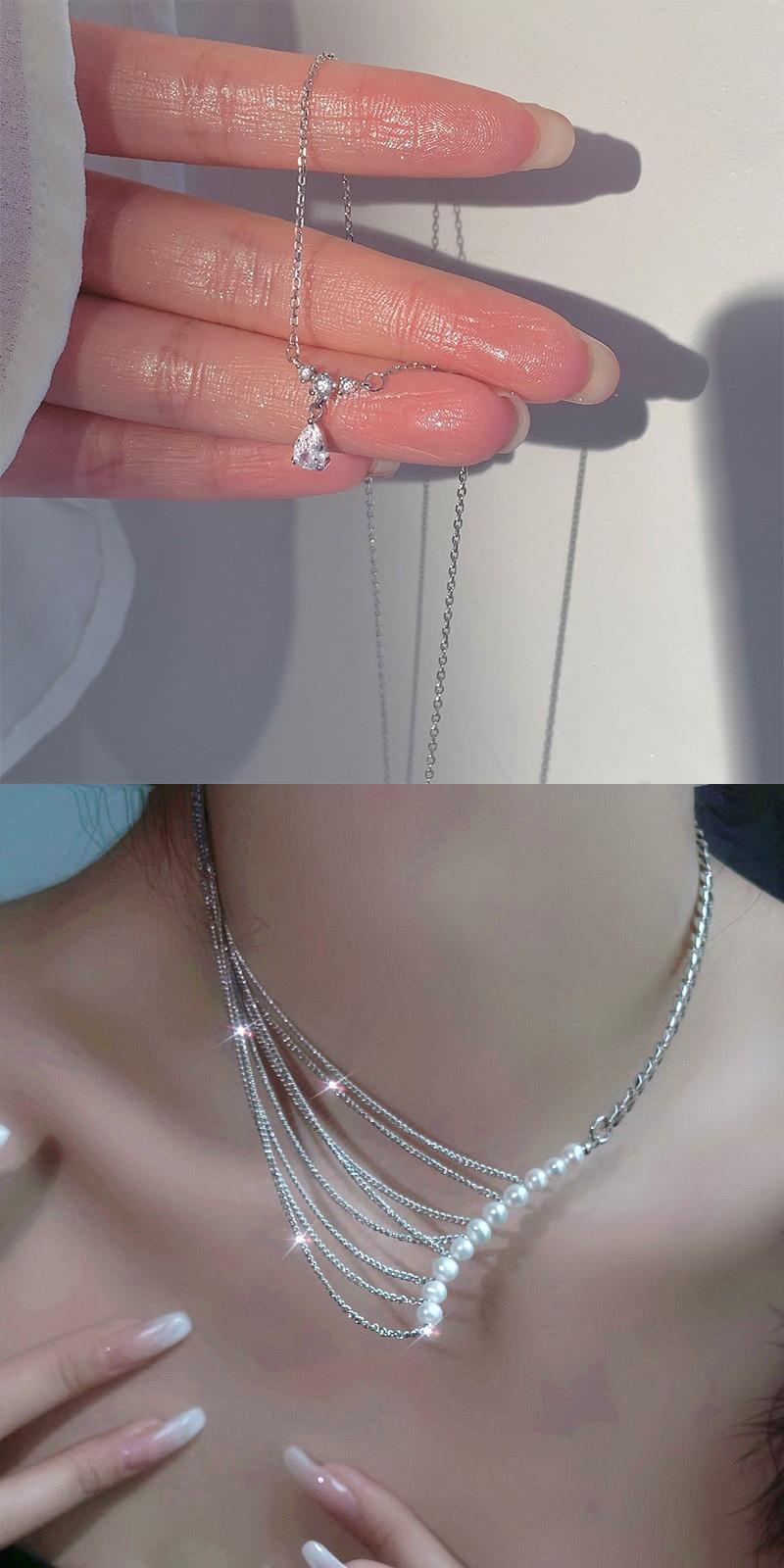 送料無料 2022年人気のシルバーカラースパークリングクラビクルチェーンチョーカーネックレスマルチレイヤーカラー女性パーティーウェディングジュエリー レース 銀 アクセサリー AE1777766904326489