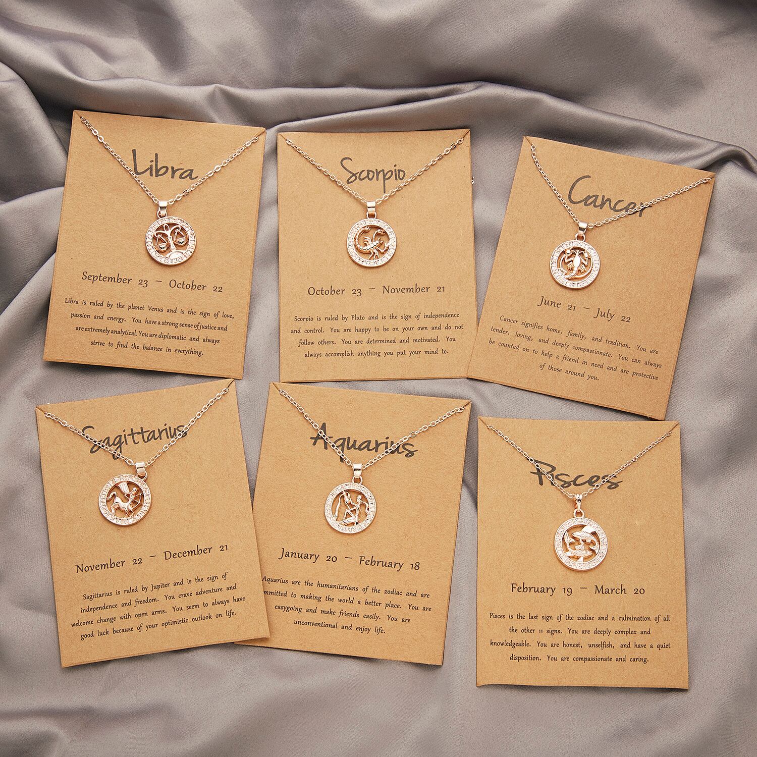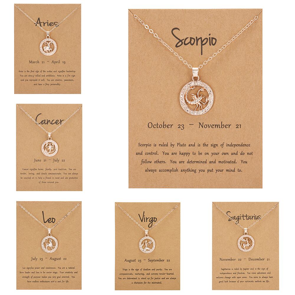 送料無料 男性女性12星座ネックレス星座ローズゴールドラウンドペンダントネックレス牡羊座レオ蠍座ジュエリーギフト レース アクセサリー AE1777777172241163