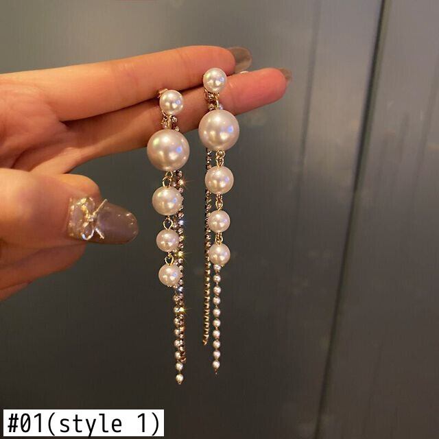 送料無料 2021年トレンドシミュレーションパールロングダングルピアス女性気質テルパールウェディングイヤリングパーティージュエリー 真珠 指輪 アクセサリー AE1777753566911755