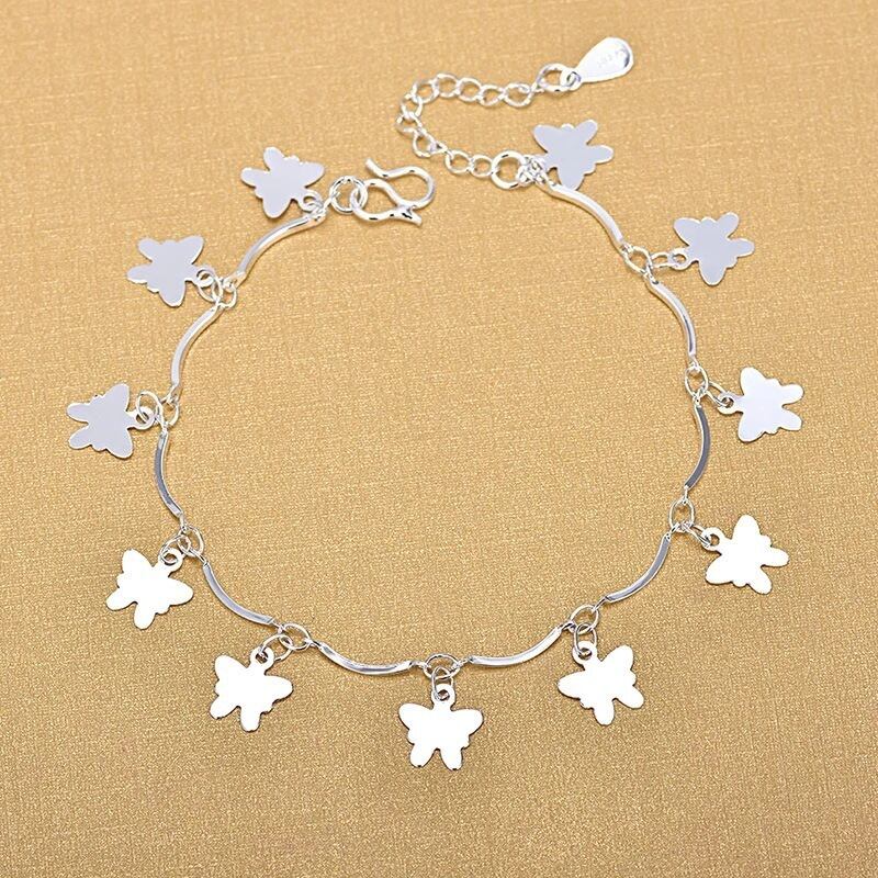 送料無料 シルバーカラーラッキービーズチャームブレスレット女性絶妙なラウンドチェーンブレスレットバングルジュエリークリスマスギフト 銀 アクセサリー AE1777717718675678