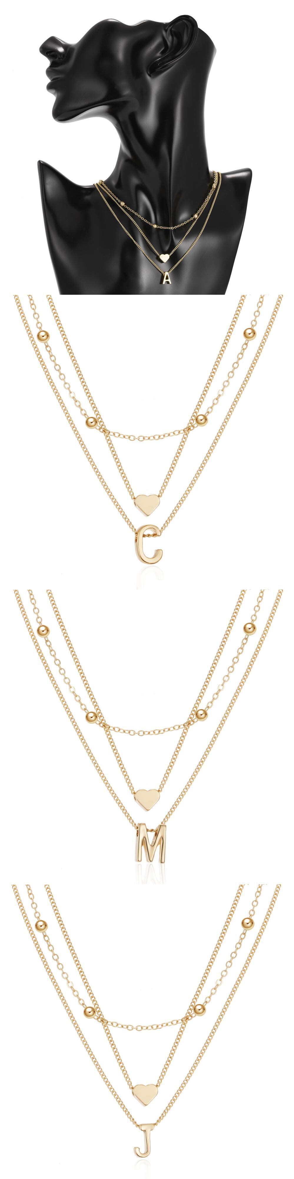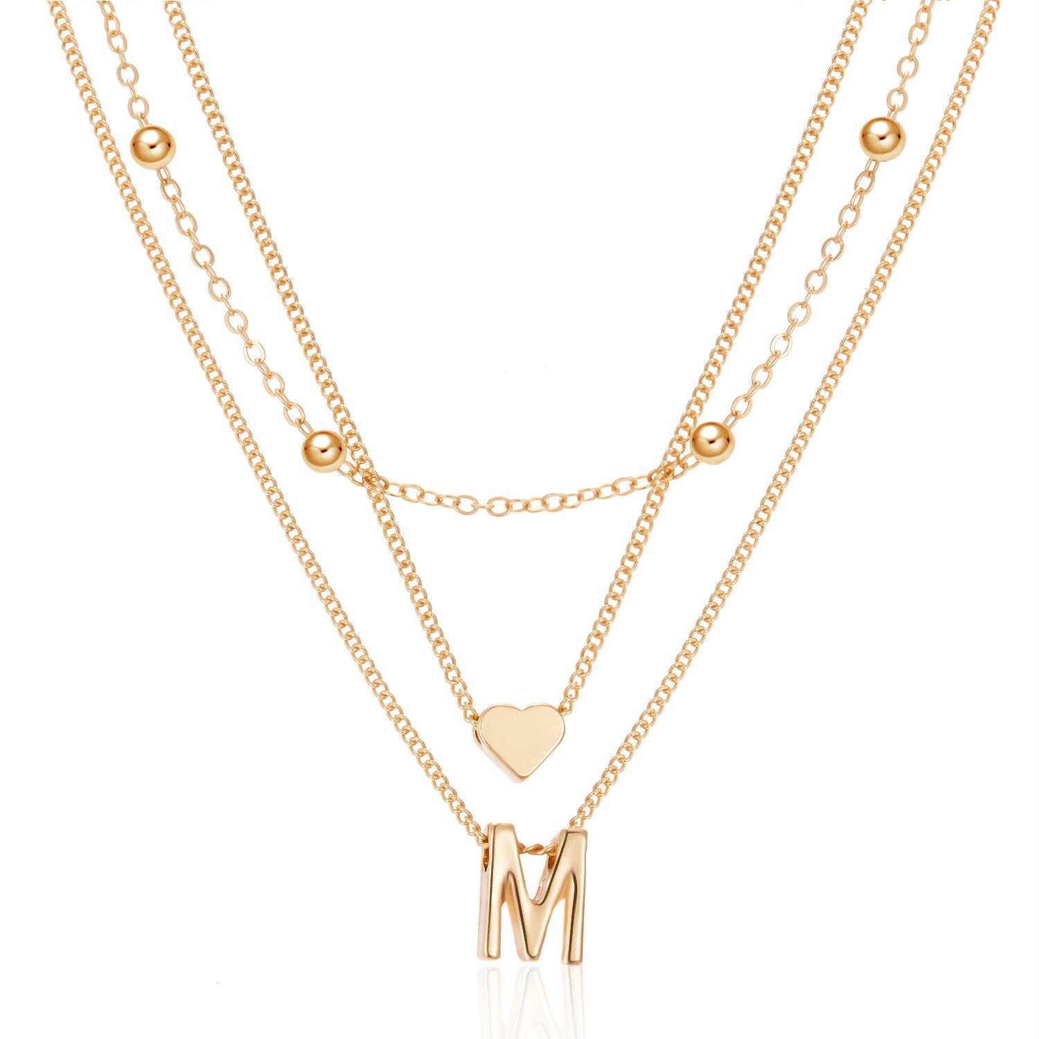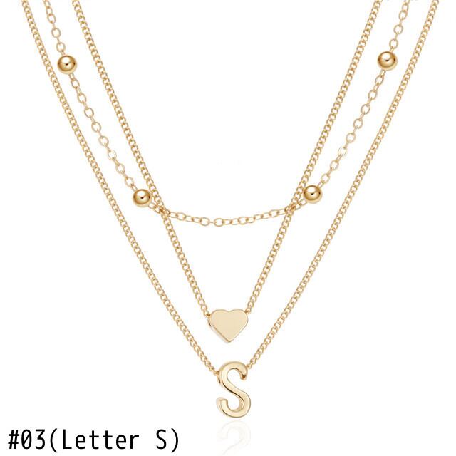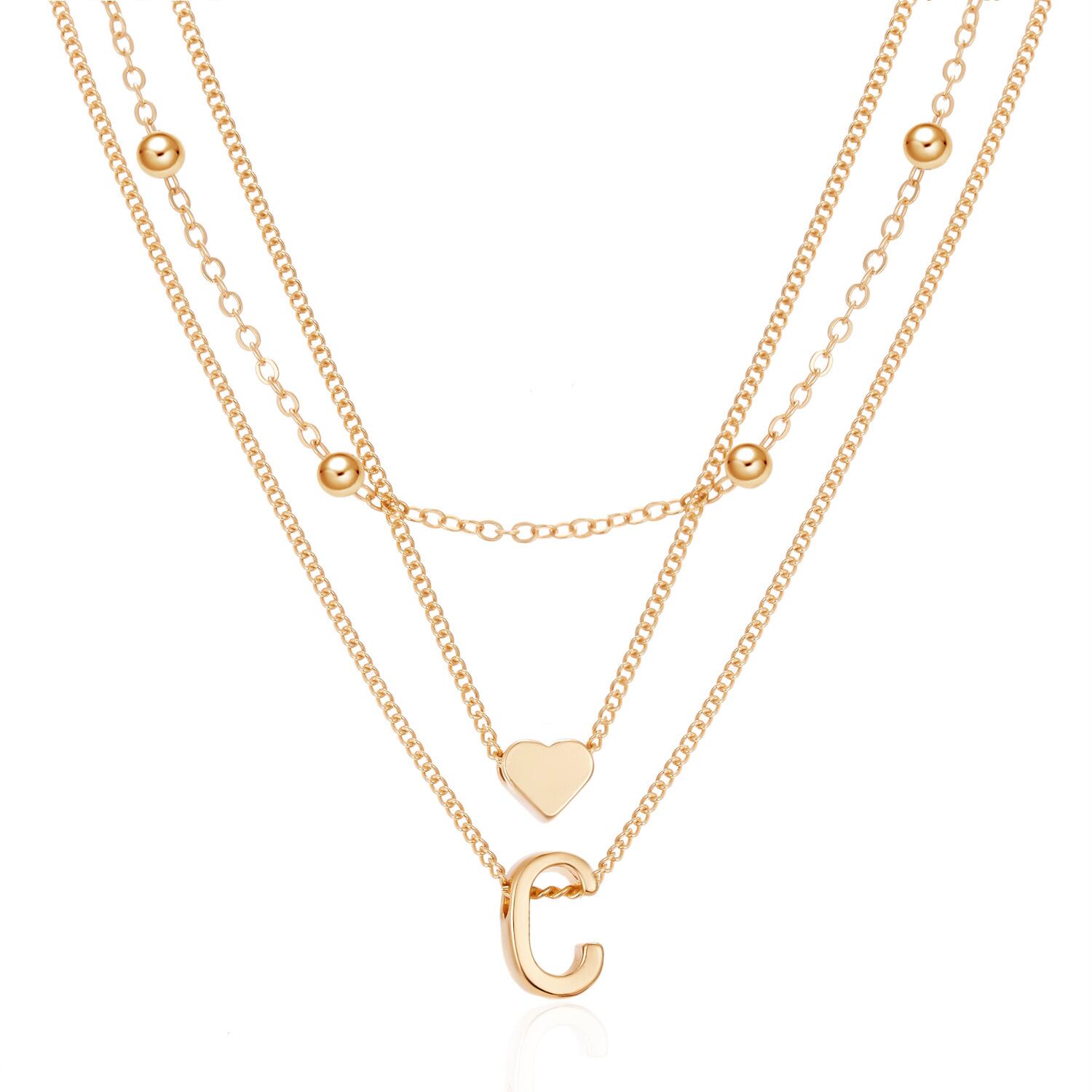 送料無料 多層小さな小さなハートチャームイニシャルレターネックレス女性ヴィンテージゴールドアルファベットクラビクルチェーンチョーカージュエリーギフト レース ビンテージ アクセサリー AE1777753866644443