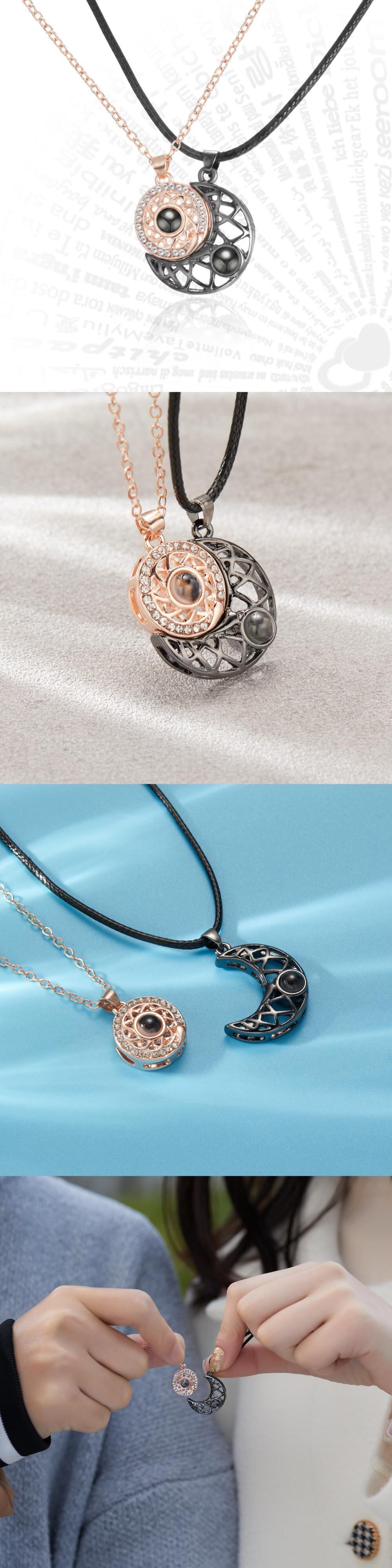 送料無料 2ピース磁気距離サンムーンカップルネックレス恋人100言語私はあなたを愛していますプロジェクションペンダントネックレスウェディングジュエリーギフト レース アクセサリー AE1777738001692022
