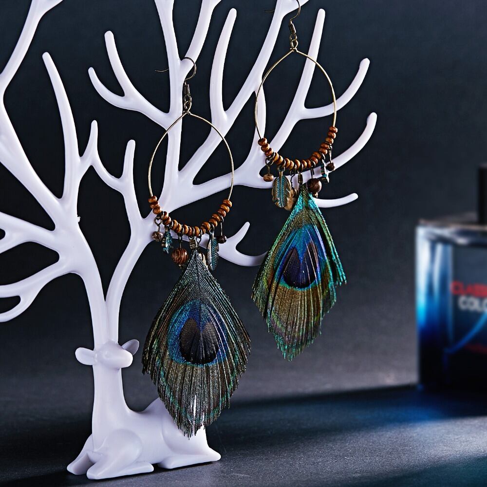 送料無料 自由奔放に生きるエスニックロングフェザーテルダングルピアス女性ヴィンテージカラフルフクロウリーフフェザーピアスブリンコス花嫁ジュエリー イヤリング リング 指輪 ビンテージ アクセサリー AE1777725943222416