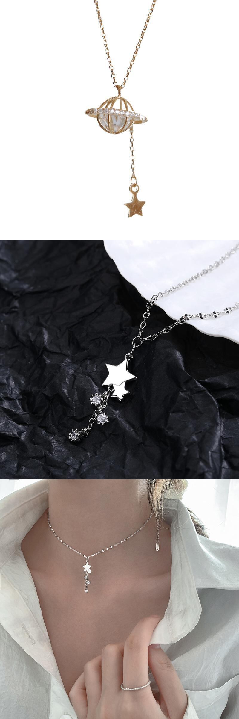 送料無料 豪華な象眼細工のジルコンスタープラネットネックレス女性の甘いかわいい星テルペンダントチョーカーウェディングパーティージュエリーギフト レース 大人ガーリー スウィート キュート カジュアル アクセサリー AE1777798422559586