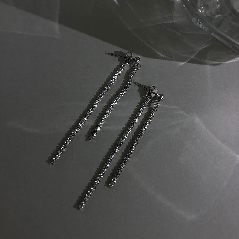 送料無料 ラグジュアリーシャイニーテルイヤリングシルバーカラーチェーンロングイヤリング女性ブライダルパーティーウェディングジュエリーギフト2021 指輪 銀 アクセサリー AE1777775105388590