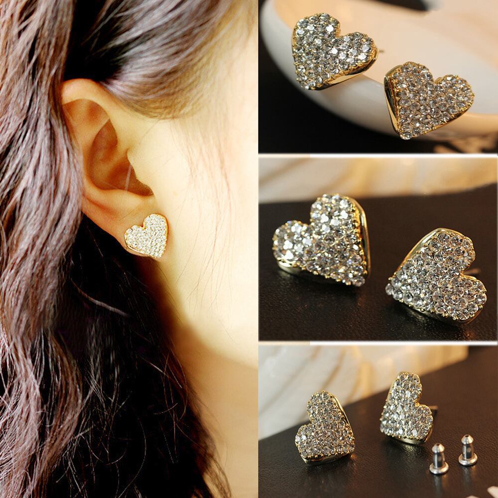 送料無料 高級ラインストーンイヤリング女性の女の子ビッグハートクリスタルシンプルなステートメントイヤリング花嫁の結婚披露宴のジュエリー 指輪 アクセサリー AE1777767618112141