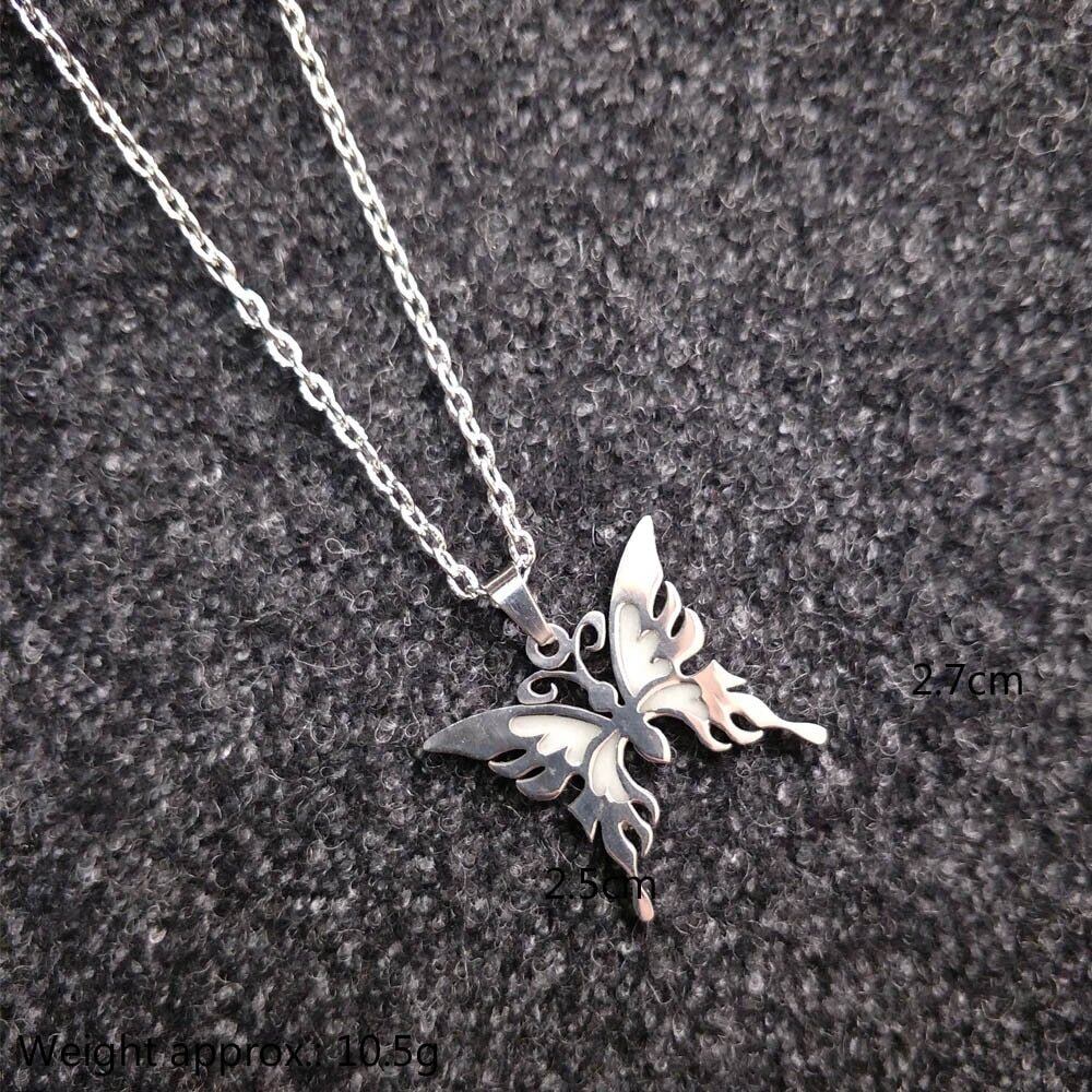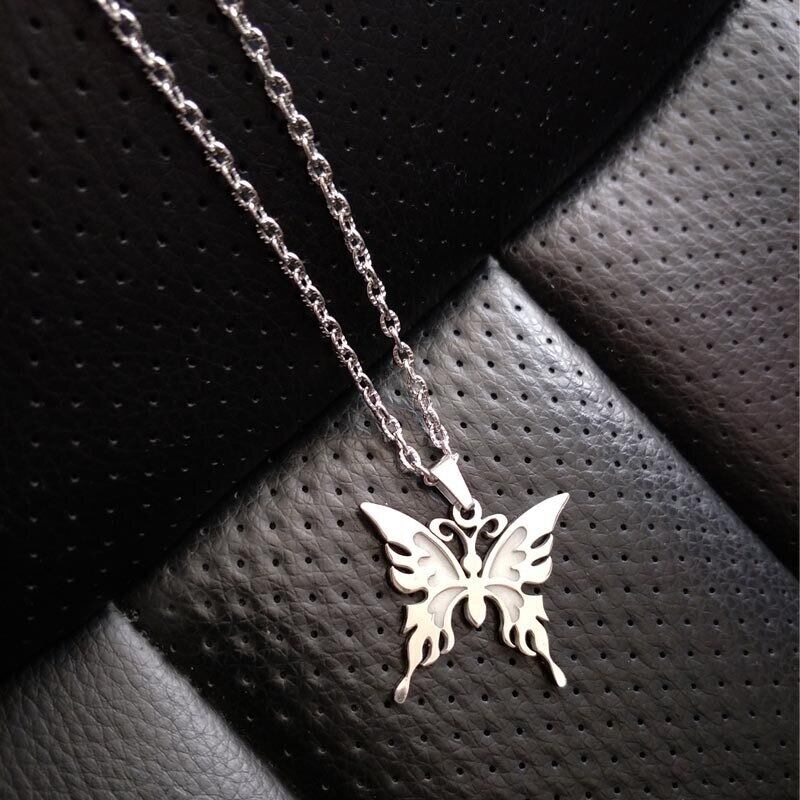 送料無料 ダークバタフライペンダントネックレスステンレススチールチェーン女性ヨガ祈り仏教ジュエリーギフトで光る レース アクセサリー AE1777711926868128