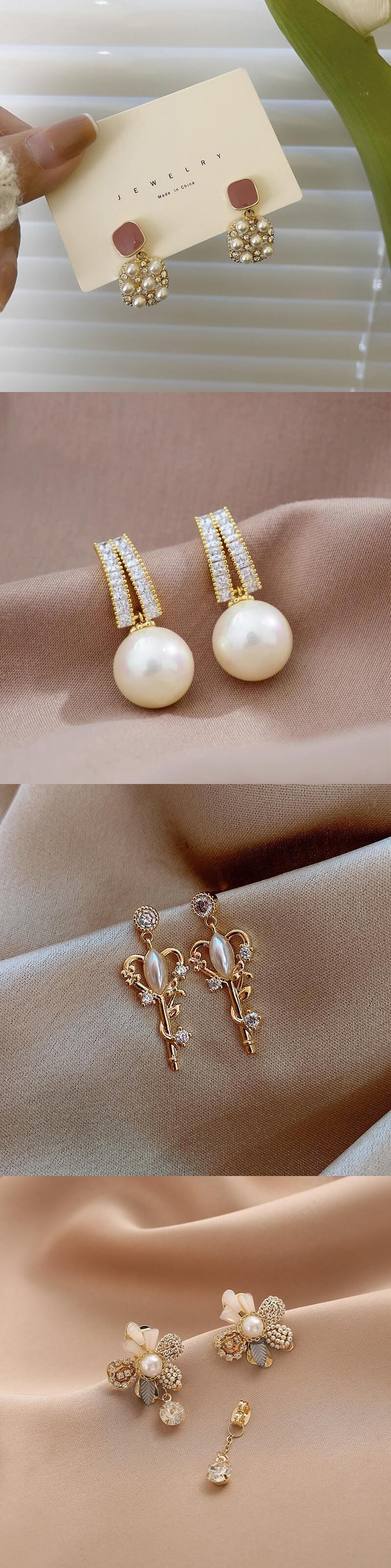 送料無料 2022イミテーションパールイヤリング女性絶妙な幾何学的なジルコンクリスタルイヤリングウェディングパーティージュエリー 真珠 指輪 アクセサリー AE1777761144871085
