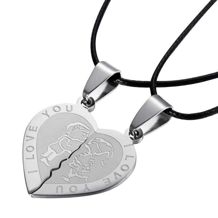 送料無料 男性女性カップルネックレスILoveYouハート愛するステンレス鋼ペンダントネックレスバレンタインデーネックレスジュエリー レース アクセサリー AE1777767604334001