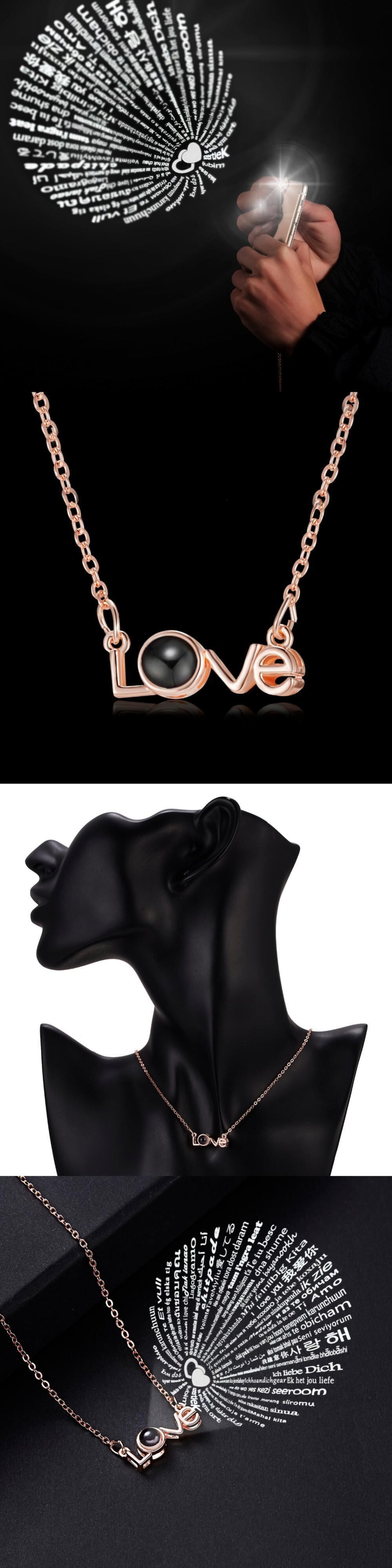 送料無料 プロジェクション100言語ILoveYouネックレスWomenLoveMemoryハートペンダントネックレスLovers鎖骨チェーンカラーチャームチョーカー レース アクセサリー AE1777784186574303