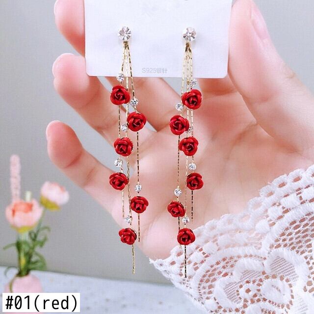 送料無料 ローズペタルピアス女性クリスタルラインストーンフラワーロングテルダングルピアスウェディングパーティージュエリーGi イヤリング リング 指輪 フラワーデザイン アクセサリー AE1777783946903648