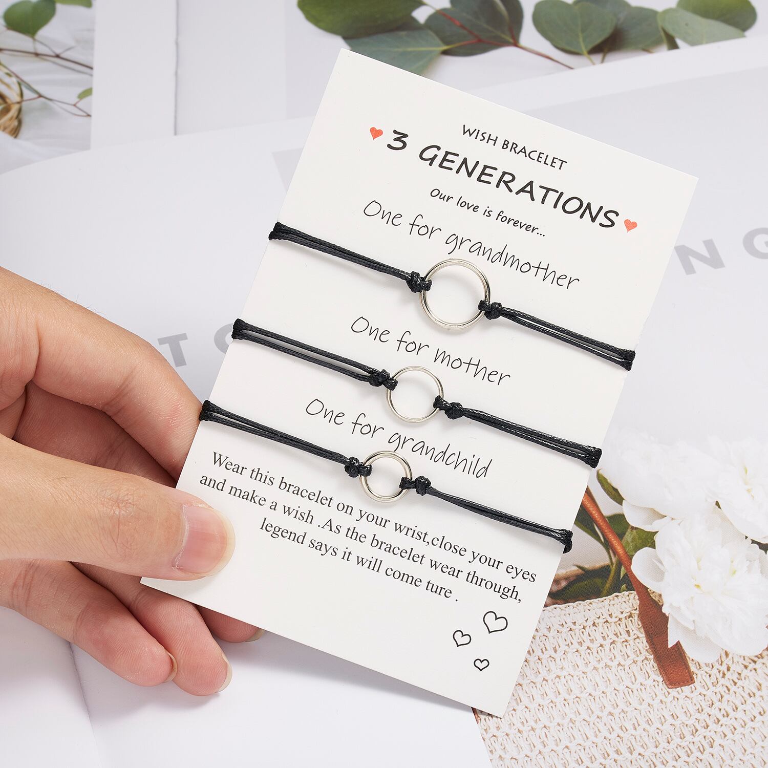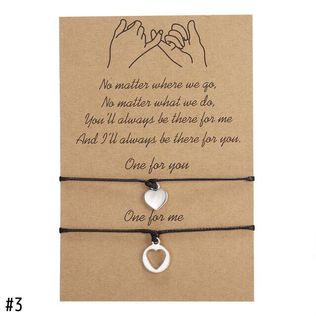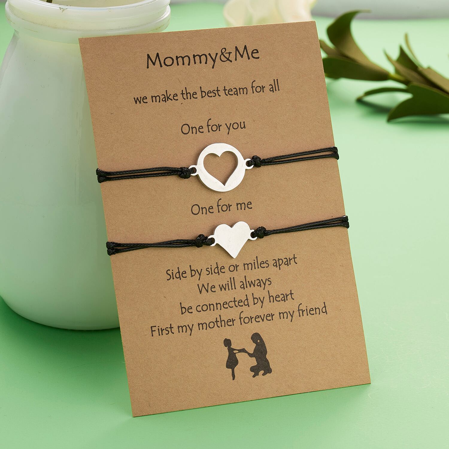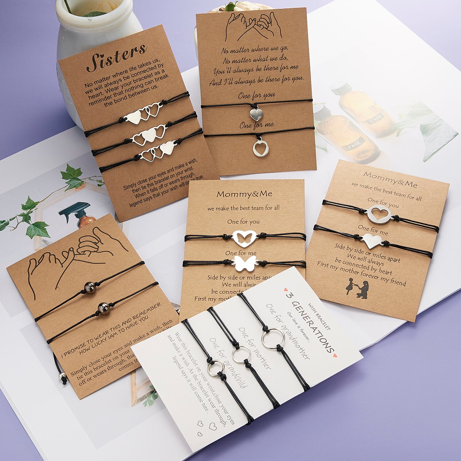 送料無料 2個/セットハートサークルビーズチャームブレスレット女性の女の子手作りブラックスレッドブレスレットジュエリーカード付き母の日ギフト アクセサリー AE1777751215255471