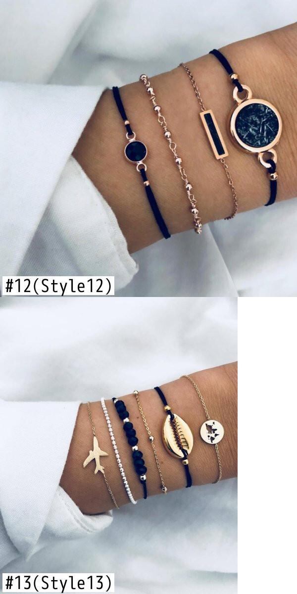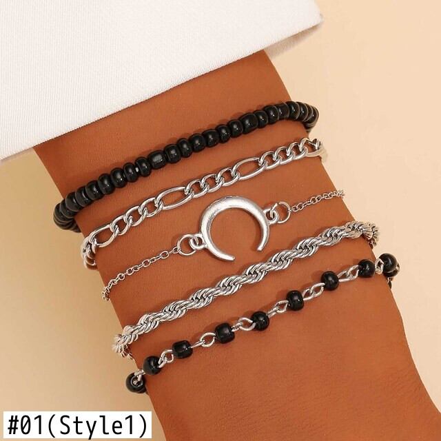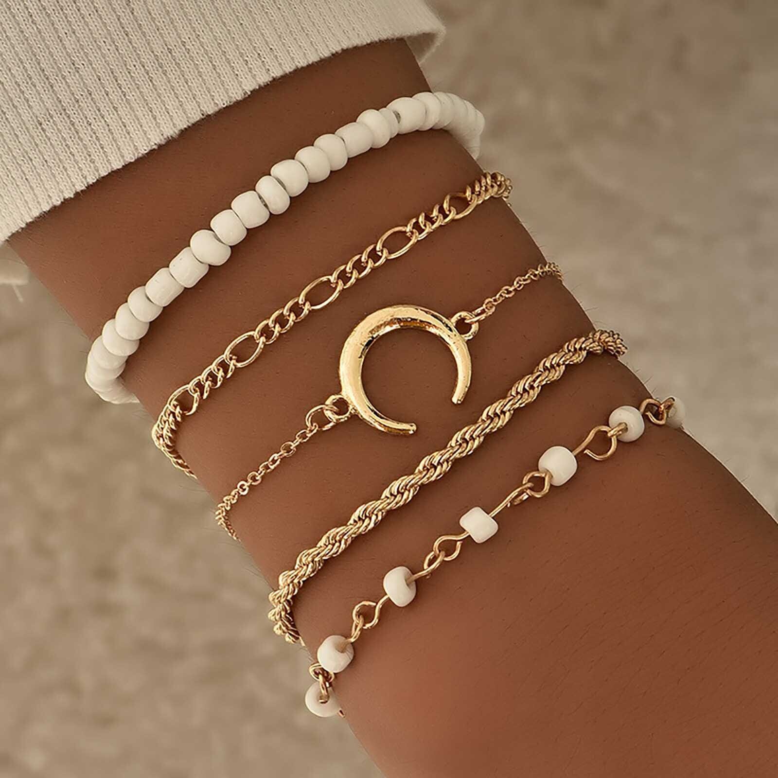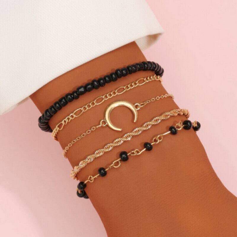 送料無料 5個/セットパンクゴールドカラーチェーンブレスレットセット自由奔放に生きるカラフルなビーズスタームーンチャームブレスレット女性2022トレンディなジュエリー アクセサリー AE17777617526462