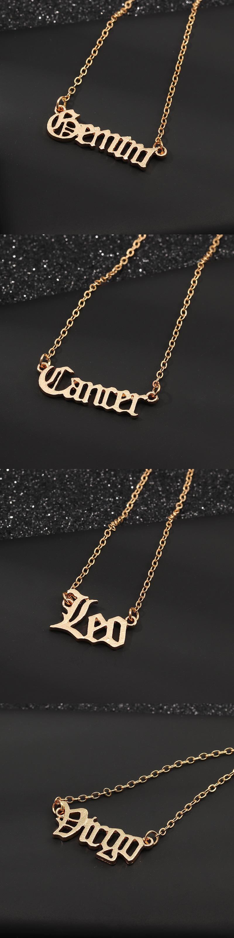 送料無料 トレンディな12星座ジュエリーネックレスヴィンテージオールドイングリッシュ星座ペンダントゴールドカラー牡羊座レオチャームネックレス誕生ギフト レース ビンテージ アクセサリー AE177773777632891