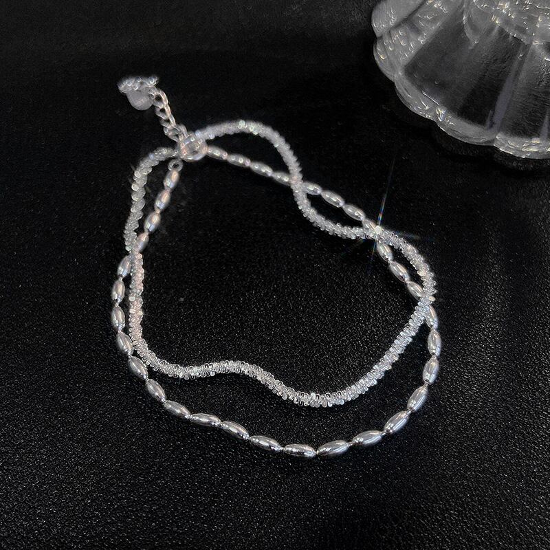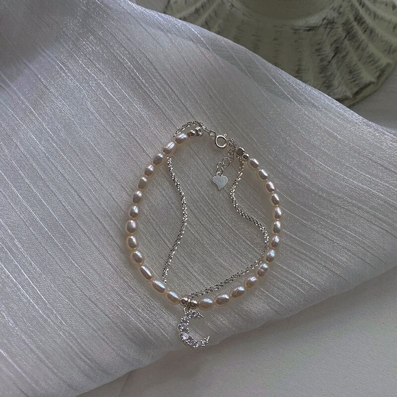 送料無料 パーソナリティシンプルスタームーンビーズチェーンブレスレット女性シルバーカラーチャームブレスレットパーティージュエリーギフト 銀 アクセサリー AE177774476402817
