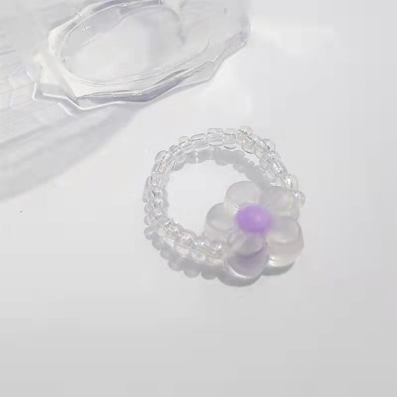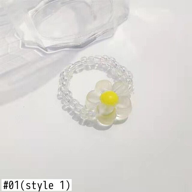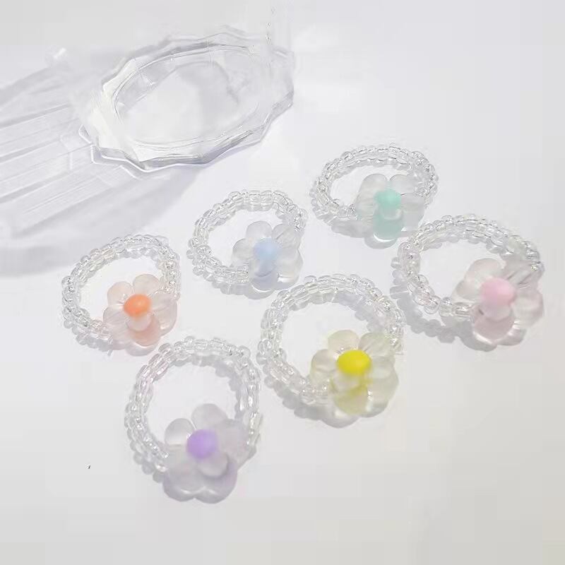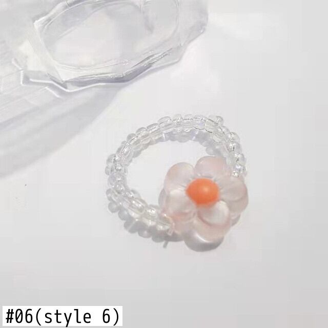 送料無料 カラフルな透明樹脂アクリルフラワーリング手作りマルチビーズ調節可能な弾性ロープリング女性パーティージュエリー エラスティック 伸縮 アジャスタブル 指輪 フラワーデザイン アクセサリー AE1777710802593468