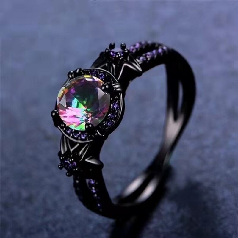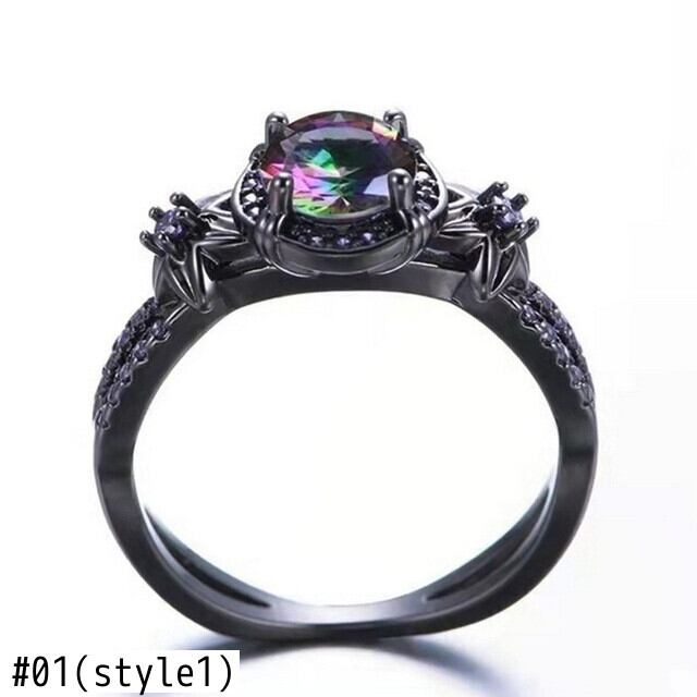 送料無料 ブラックカラーキュービックジルコニアリング女性絶妙なパープルクリスタル婚約指輪アニバーサリーギフトウェディングジュエリー 風信子石 アクセサリー AE1777772344771893