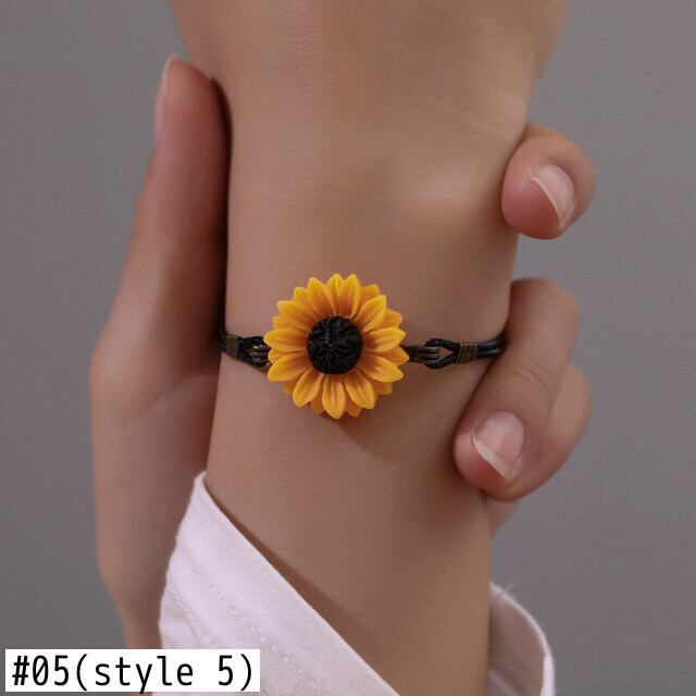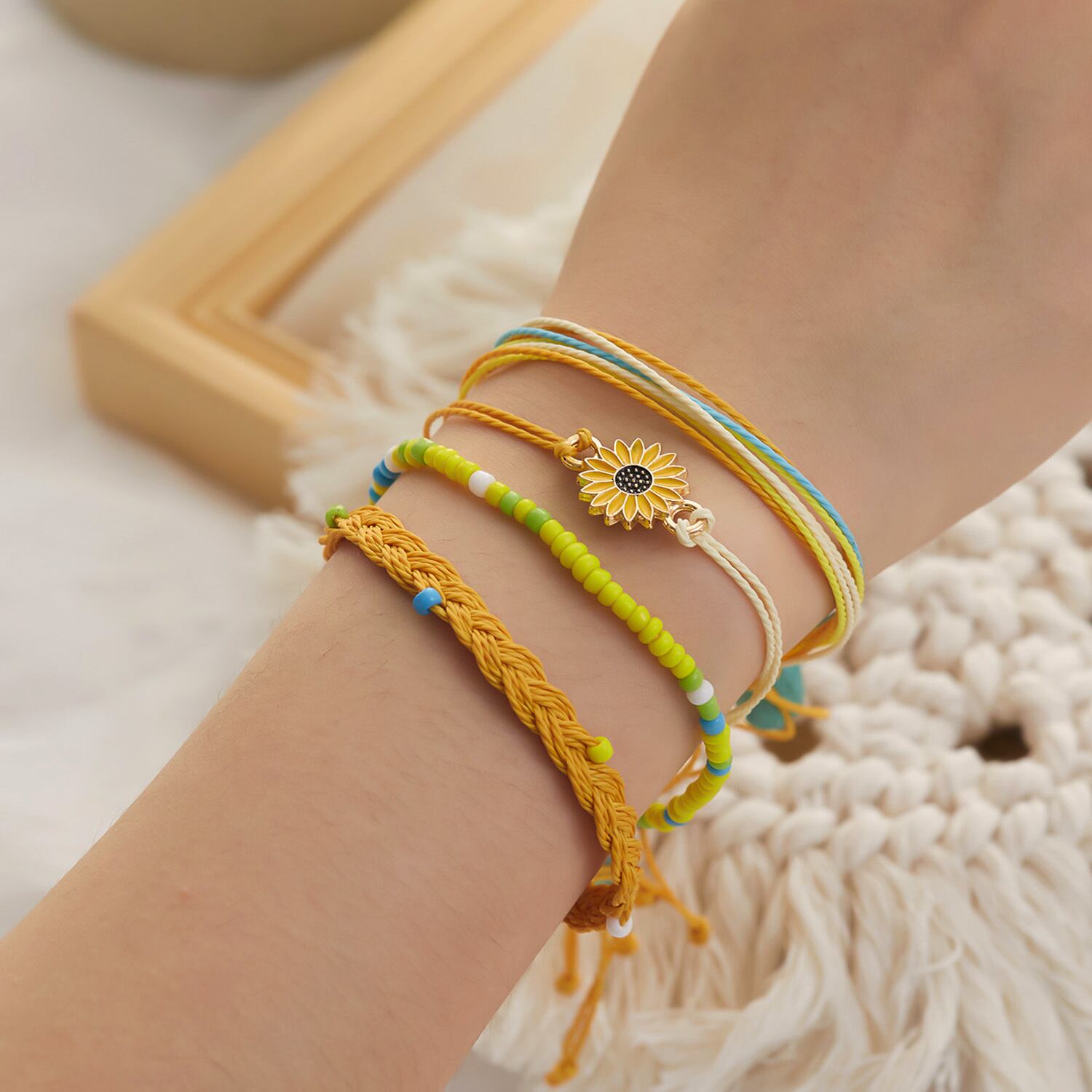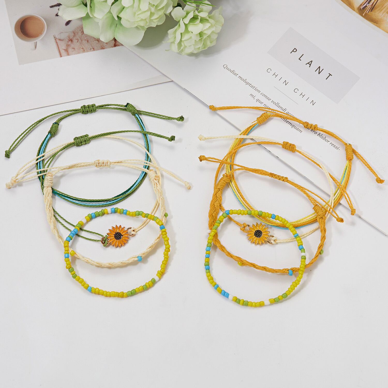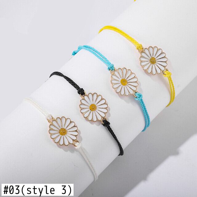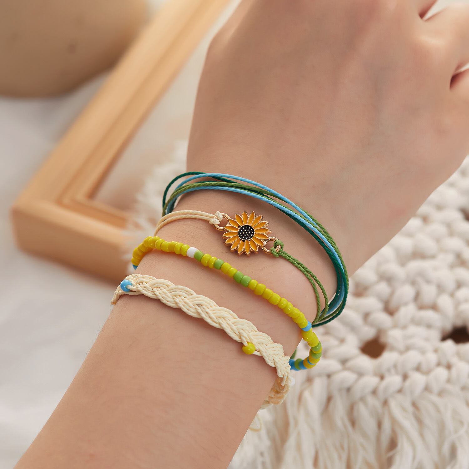 送料無料 デイジーフラワー手作り編みこみブレスレット女性自由奔放に生きるカラフルなビーズひまわりチャームブレスレット友情ジュエリーギフト フラワーデザイン アクセサリー AE1777736492177691