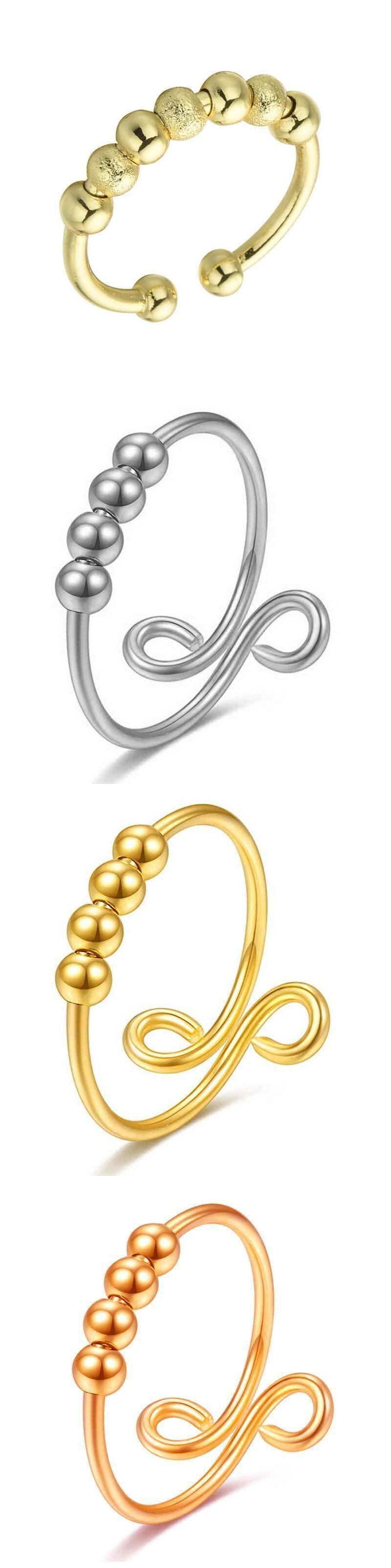 送料無料 パンククール不安リングフィジェットビーズ回転可能なリングスピナー自由に回転アンチストレスギフト男性女性ジュエリー 指輪 アクセサリー AE1777731286568505