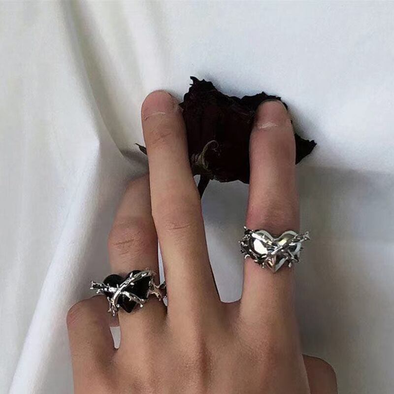 送料無料 クリエイティブとげラブハートリング女性男性レトロパンクゴシックシルバーカラーメタルオープンリングカップルパーティージュエリーギフト 指輪 銀 アクセサリー AE1777784447513515