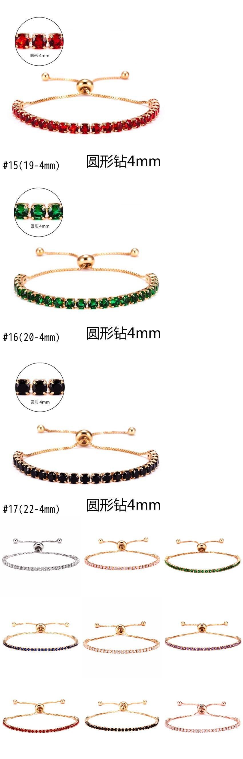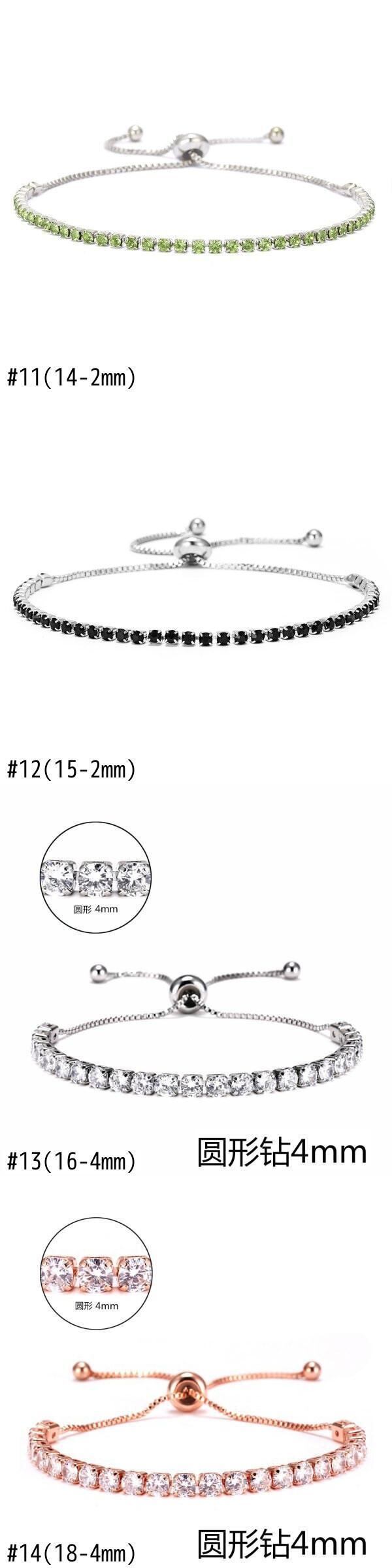 送料無料 2/3/4mmチャームCZテニスブレスレットレディースクリスタルジルコンジュエリーアジャスタブルゴールドシルバーカラーボックスチェーンブレスレットギフト 銀 アクセサリー AE1777712432299924