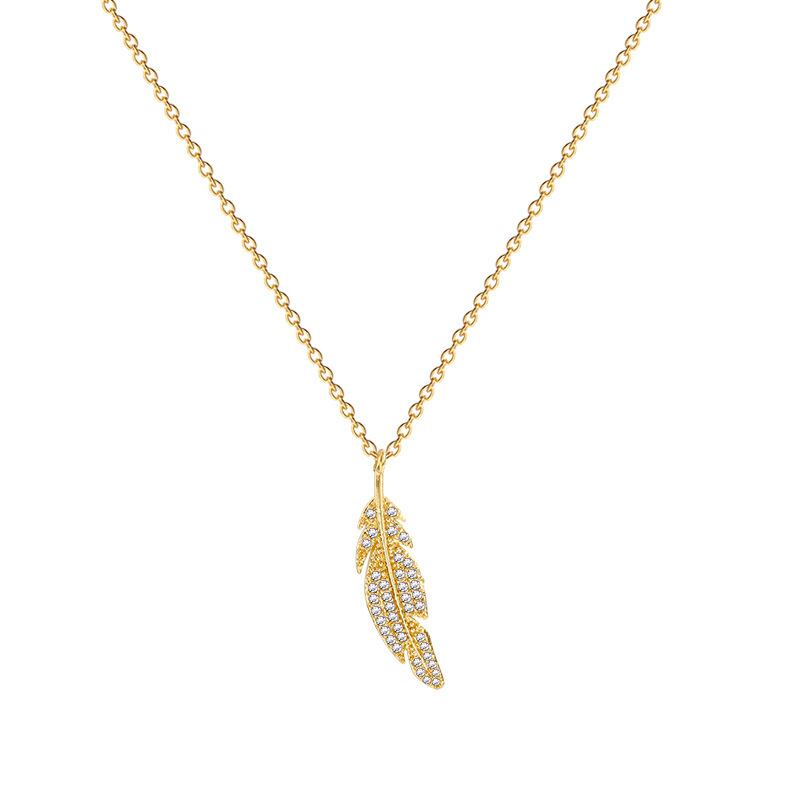 送料無料 高級ジルコンクリスタルリーフフェザーゴールドペンダントステンレススチールネックレスレディースジュエリーレディ絶妙なクラビクルチェーン レース アクセサリー AE1777761304914022