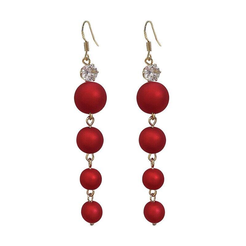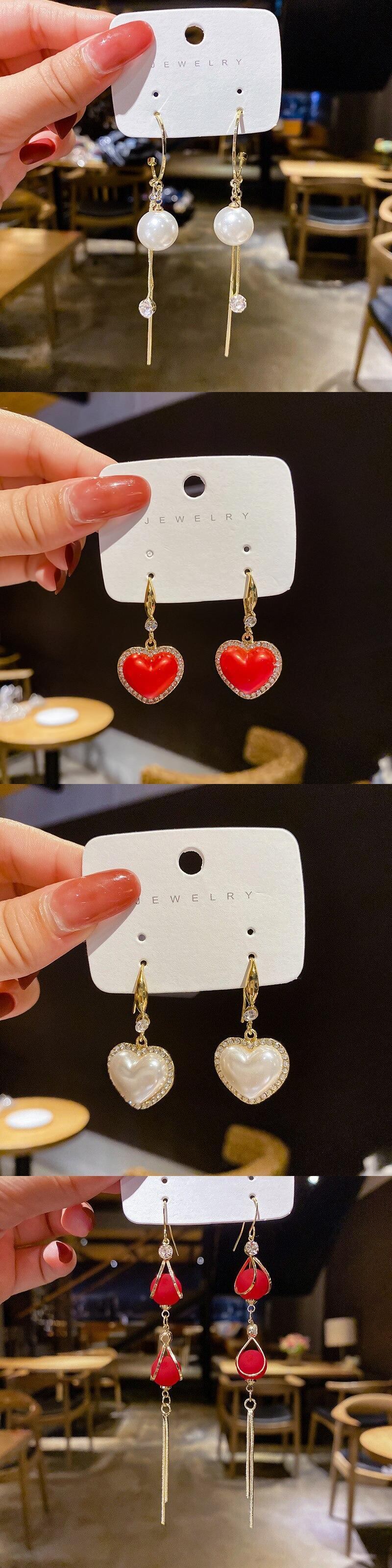 送料無料 シミュレートされたパールロングテルイヤリングフレンチレトロレッドパールジルコンステートメントイヤリング女性パーティージュエリー 真珠 指輪 人工 アクセサリー AE1777793167151055
