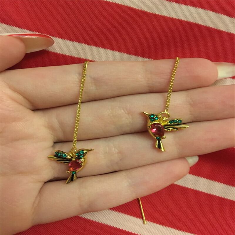 送料無料 ユニークなロングイヤリングバードペンダントテルクリスタルダングルピアスジュエリーアニバーサリーパーティーギフト 指輪 アクセサリー AE1777777409252999