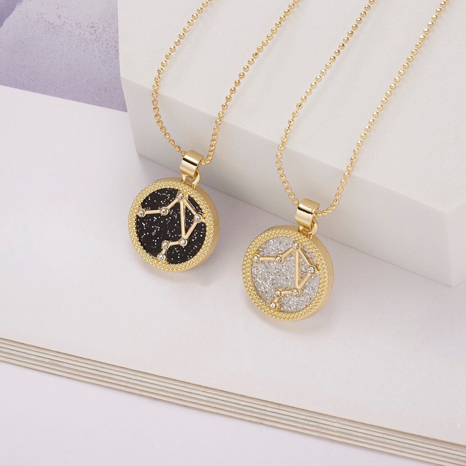 送料無料 12ゾディアック星座ネックレス幾何学的なラウンドペンダントゴールドシルバーカラーチェーンネックレスユニセックス友情ジュエリー恋人ギフト レース 銀 アクセサリー AE1777791112353365