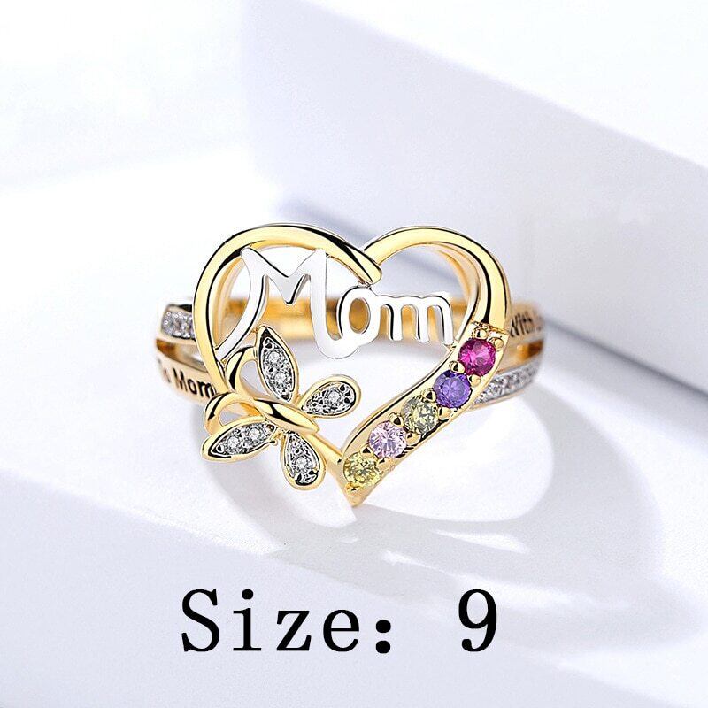 送料無料 ヴィンテージゴールドホロウハートシェイプリングシャイニージルコンバタフライレターママフィンガーリング女性ジュエリー誕生日母の日ギフト 指輪 ビンテージ アクセサリー AE1777716668621436