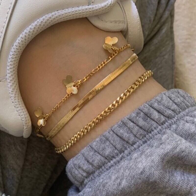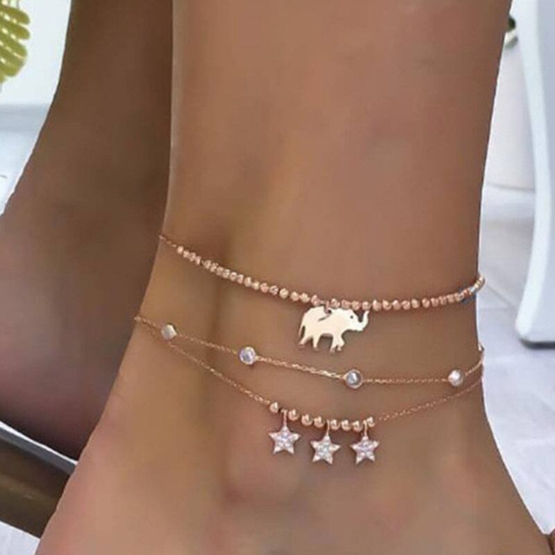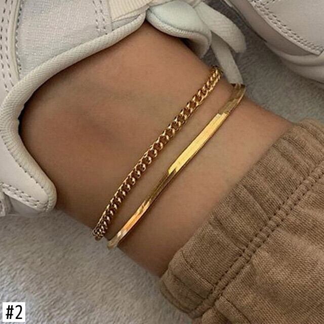 送料無料 3個/セットゴールドカラーシンプルチェーンアンクレットレディースビーチサマージュエリーレッグチェーンアンクレットブレスレットレディースガールズフットアクセサリー 夏物 アクセサリー AE1777742952691742