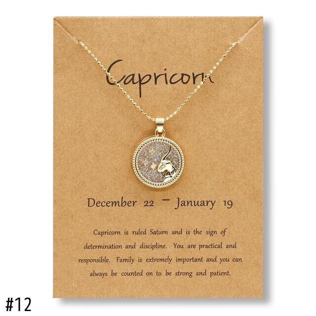 送料無料 トレンディな12コンステレーションペンダントネックレスチャームゴールドチェーンゾディアックサインチョーカーネックレス女性男性カラージュエリーギフト レース アクセサリー AE1777755976509633