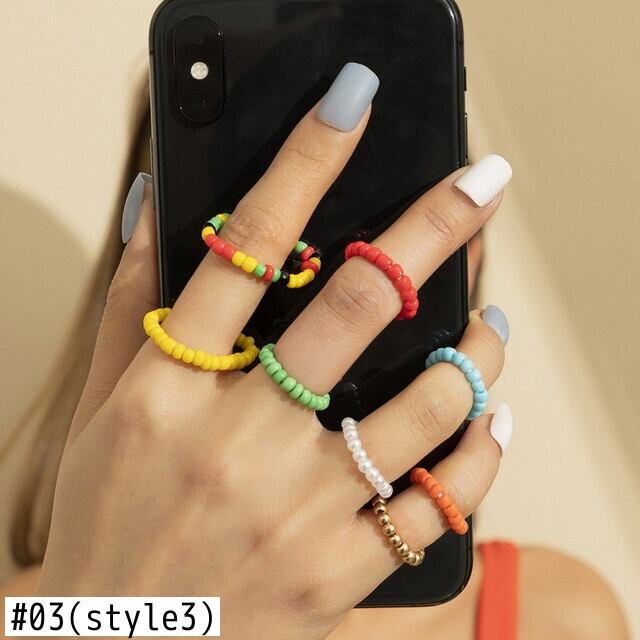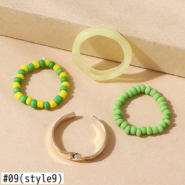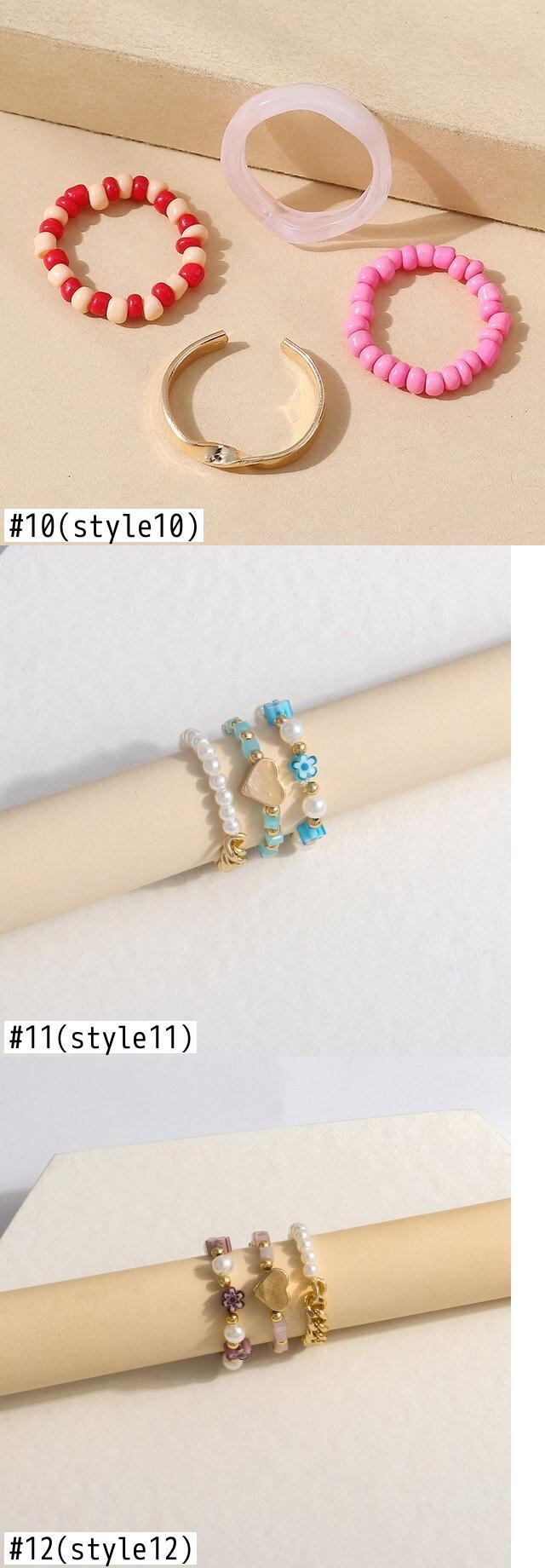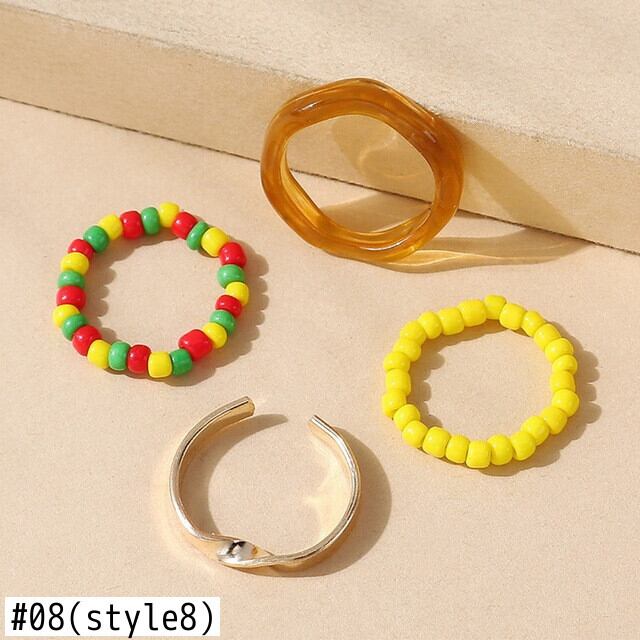 送料無料 4個/セットボヘミアンカラフルビーズハートフラワーリングセット手作りマルチビーズミニビーズリング女性ガールビーチパーティージュエリー 指輪 フラワーデザイン アクセサリー AE177776352257731