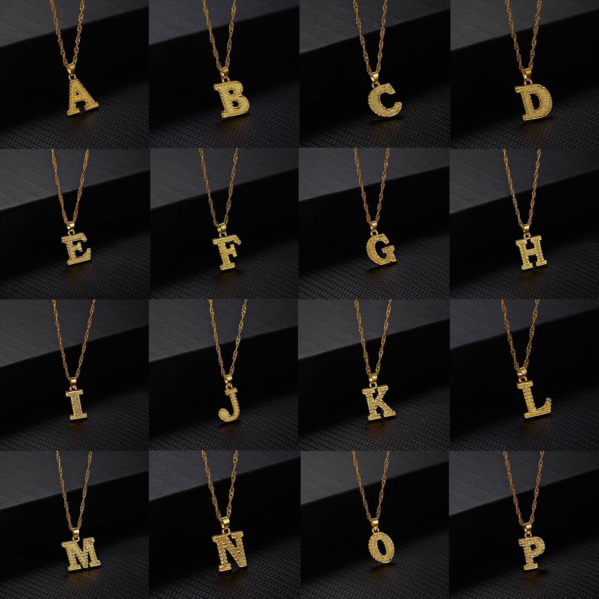 送料無料 チャームゴールドカラー頭文字ネックレス女性男性ジュエリーコリアーステンレス鋼アルファベットネックレス親友ギフト レース アクセサリー AE1777738232400601
