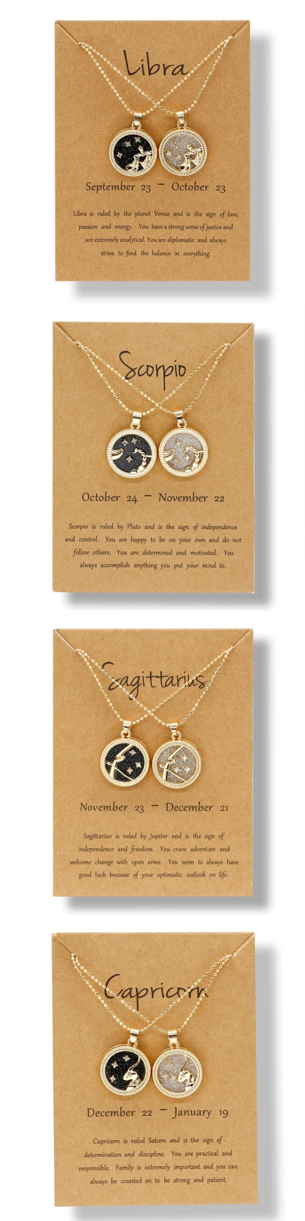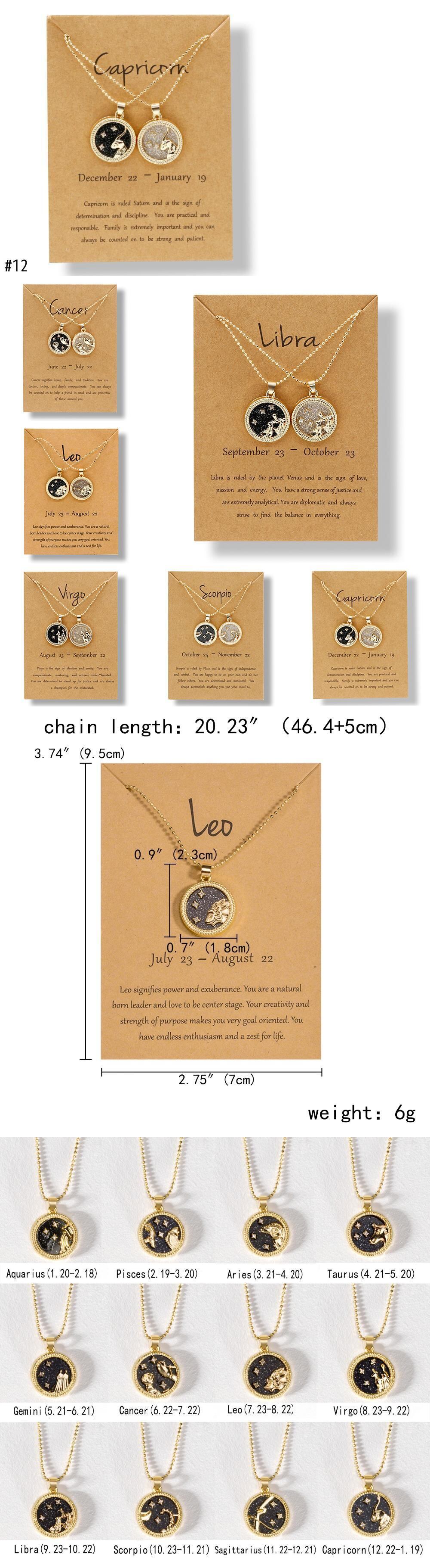 送料無料 12星座ネックレス女性男性ゴールドチェーン星座ラウンドペンダントネックレスカップルジュエリー誕生日プレゼント レース アクセサリー AE1777753201089038