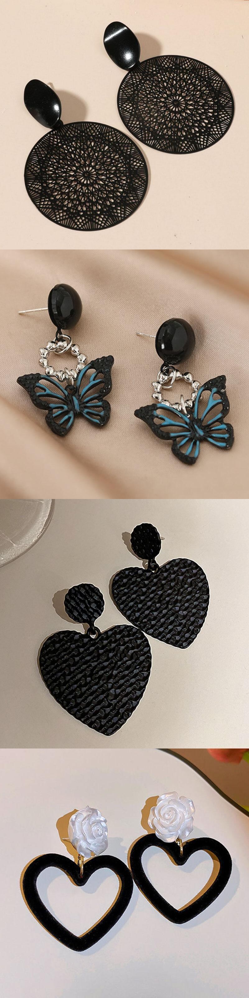 送料無料 ヴィンテージブラックエストフラワーバタフライイヤリング女性幾何学的誇張された気質ハートハンギングイヤリングパンクジュエリーギフト 指輪 フラワーデザイン ビンテージ アクセサリー AE1777755187921866