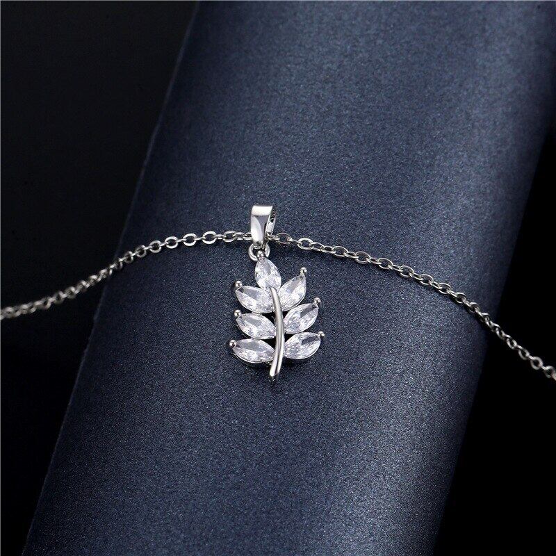 送料無料 絶妙なAAAジルコンクラビクルチェーンネックレスシルバーカラークリスタルリーフチョーカーネックレス女性パーティージュエリーペンダント レース 銀 アクセサリー AE1777731672930187