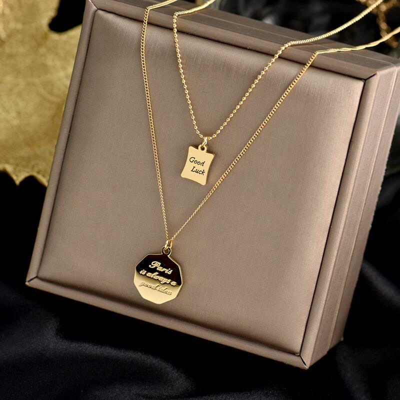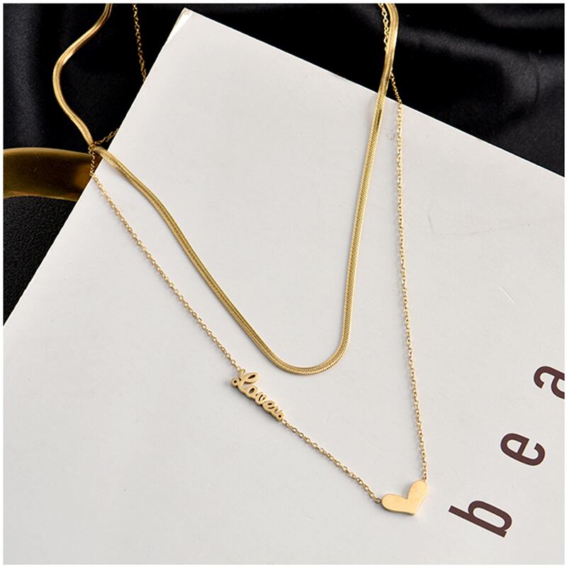 送料無料 女性鎖骨チェーンネックレスチタンスチールダブルレイヤーチョーカーネックレスジュエリーレターHハートラウンドペンダント レース アクセサリー AE1777758288326092