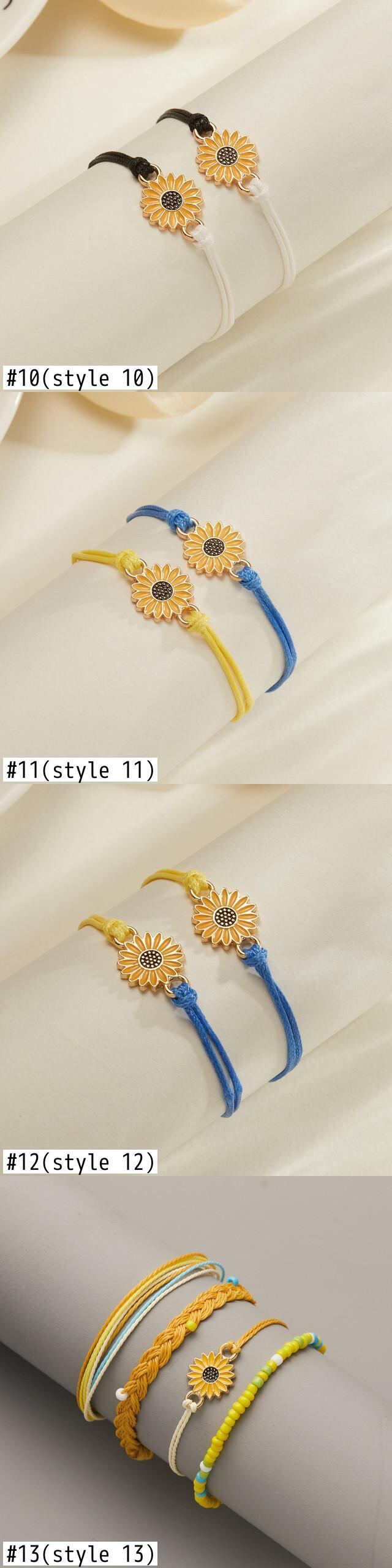 送料無料 手作り編みこみロープブレスレット女性デイジーヒマワリ調節可能なチャームブレスレット女の子友情ジュエリーパーティーギフト アジャスタブル フラワーデザイン アクセサリー AE1777754657422479