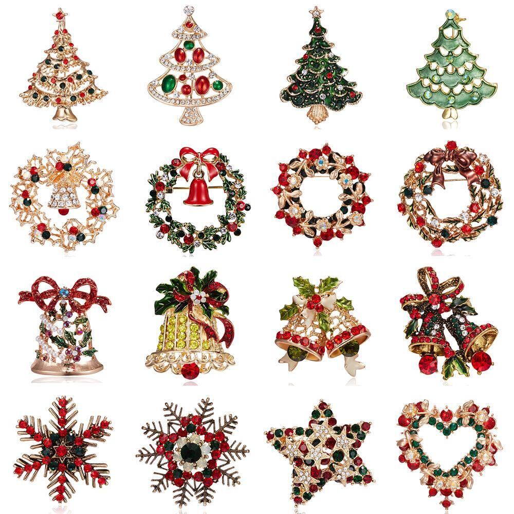 送料無料 12スタイルのクリスマスツリーリースベルスノーフレークブローチ繊細なシニークリスタルラインストーンピンブローチ女性のクリスマスプレゼント アクセサリー AE1777760531847931