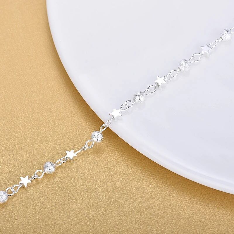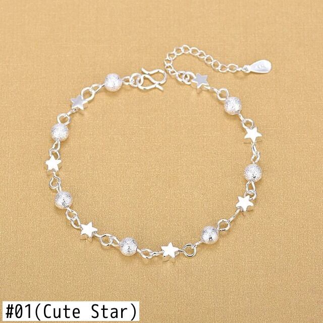 送料無料 シンプルなシルバーカラーチェーンブレスレット女性絶妙なトレンディフラワースターハートチャームブレスレットジュエリーギフト フラワーデザイン 銀 アクセサリー AE1777722578878382