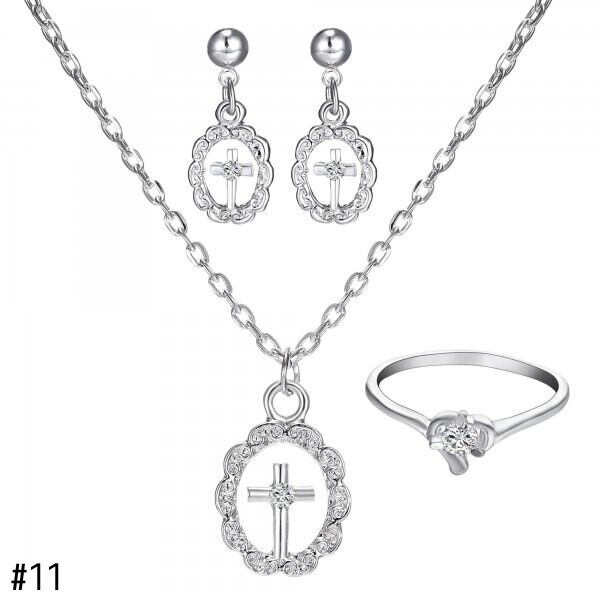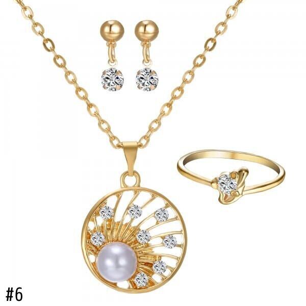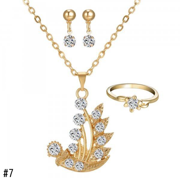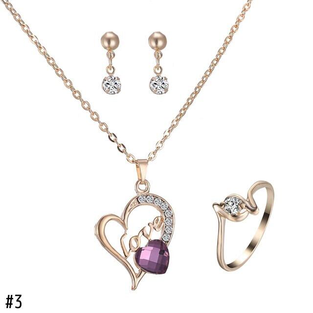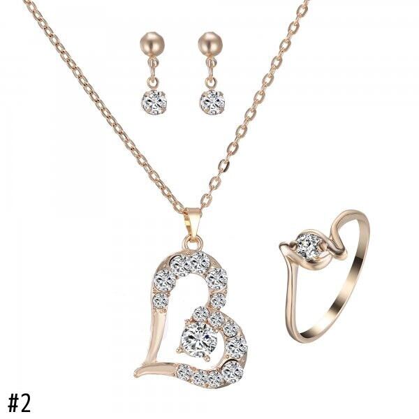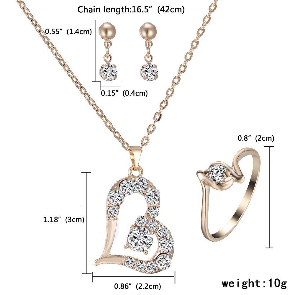 送料無料 ロマンチックチャームラブハートジュエリーセットゴールドペンダントネックレス女性ガールウェディングパーティーエンゲージメントジュエリーギフト レース アクセサリー AE1777713922155300