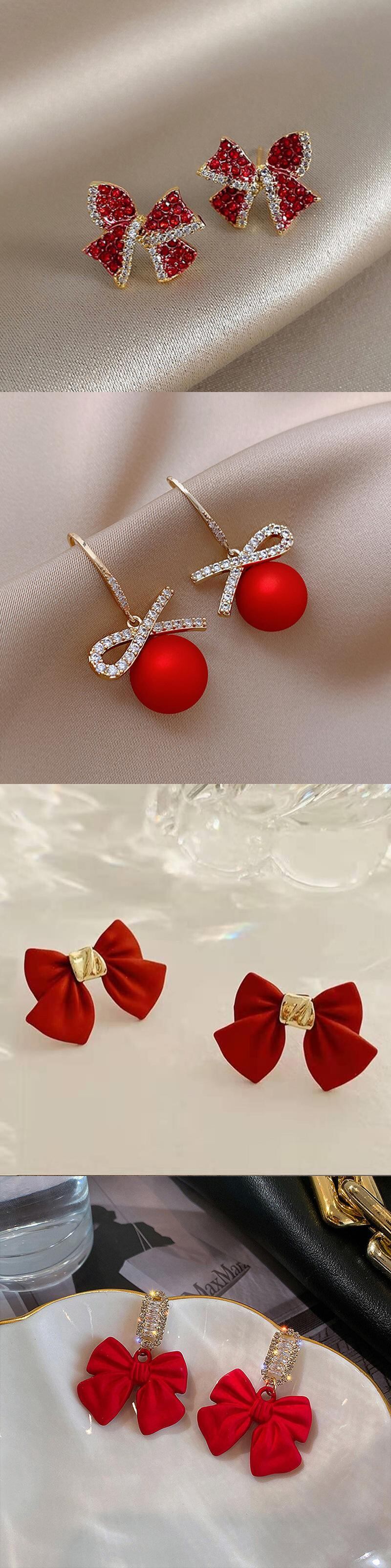 送料無料 2021スタイリッシュなラッキーレッドハートボウノットスタッドピアスレディースジュエリーチャイニーズスタイルハッピーイヤーステートメントピアス リボン イヤリング リング 指輪 アクセサリー AE1777766880958610