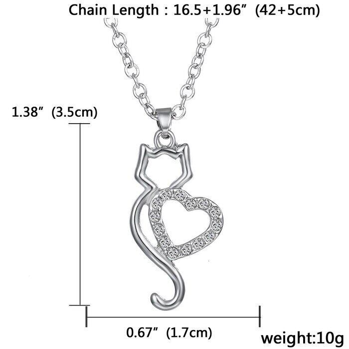 送料無料 クリスタルステンレススチールネックレスチェーンハートアニマルペンダントネックレス猫ジュエリーアクセサリー女性バレンタインデー レース アクセサリー AE1777778709337635