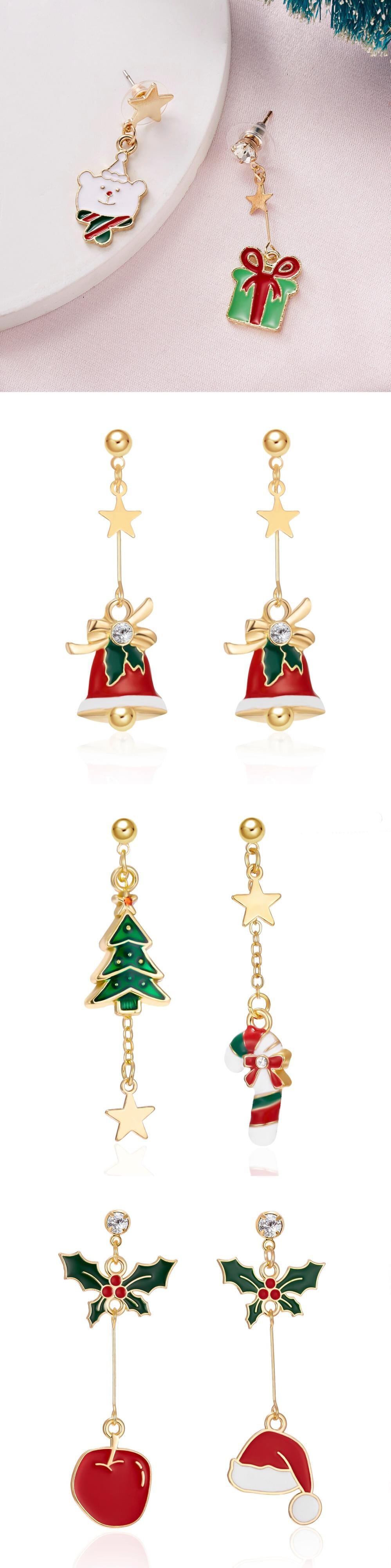 送料無料 トレンディなクリスマスツリーベルエルクイヤリング女性サンタクローススノーマン非対称イヤリングパーティージュエリークリスマスプレゼント 指輪 アクセサリー AE1777759756135927