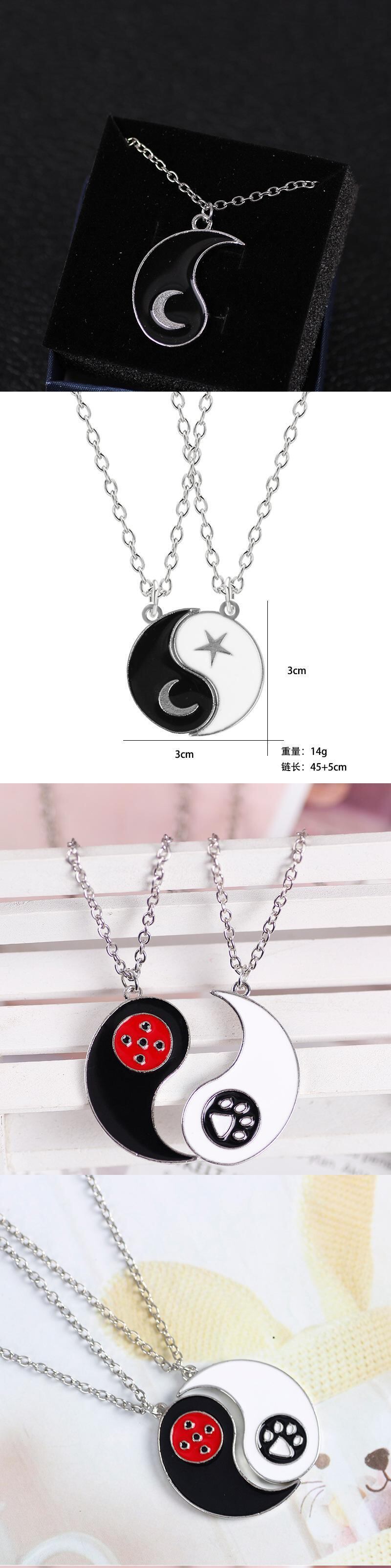 送料無料 2pcsシンプルな友情カップルネックレス女性男性恋人マッチング陰陽太極拳ペンダント首輪ジュエリーギフト レース アクセサリー AE1777771270689186