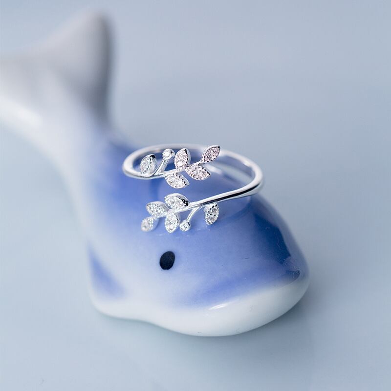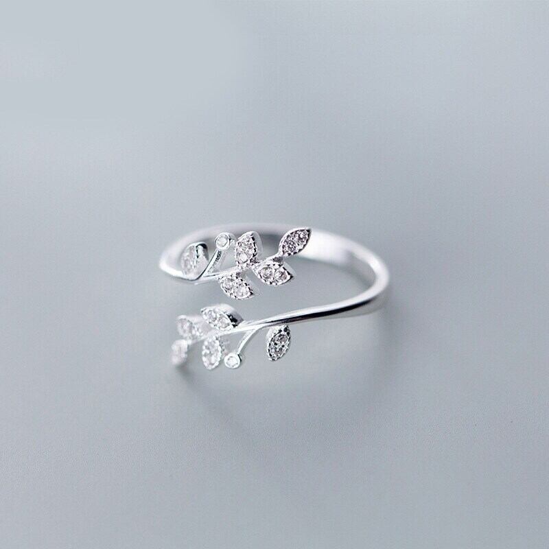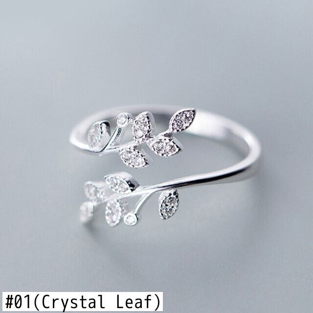送料無料 パーソナリティトレンディなクリスタルリーフリング女性のウェディングジュエリーアジャスタブルレトロシルバーメッキリングアニロス発送 指輪 銀 アクセサリー AE1777719471289724