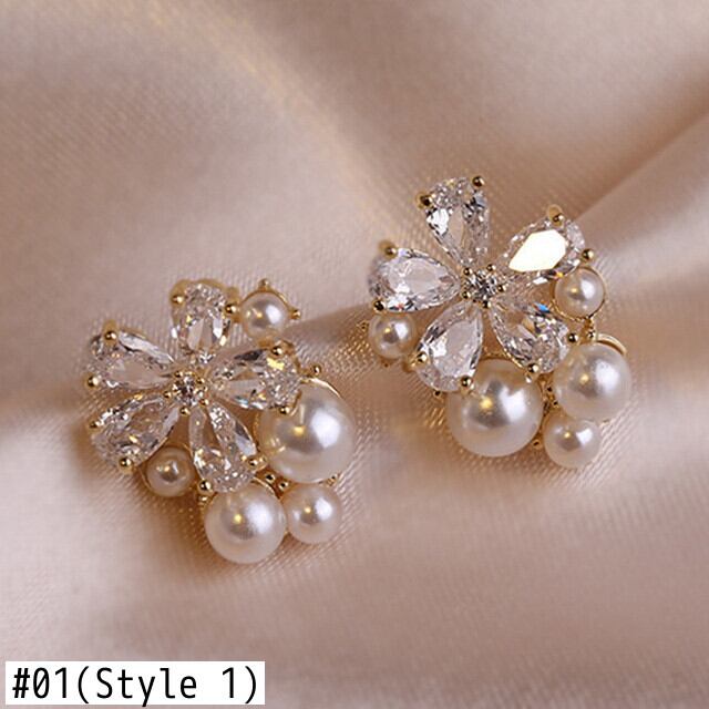 送料無料 クリスタルフラワーステートメントイヤリング女性気質幾何学的ラウンドパールジルコンスタッドピアスジュエリー2021 真珠 指輪 フラワーデザイン アクセサリー AE177779796725424
